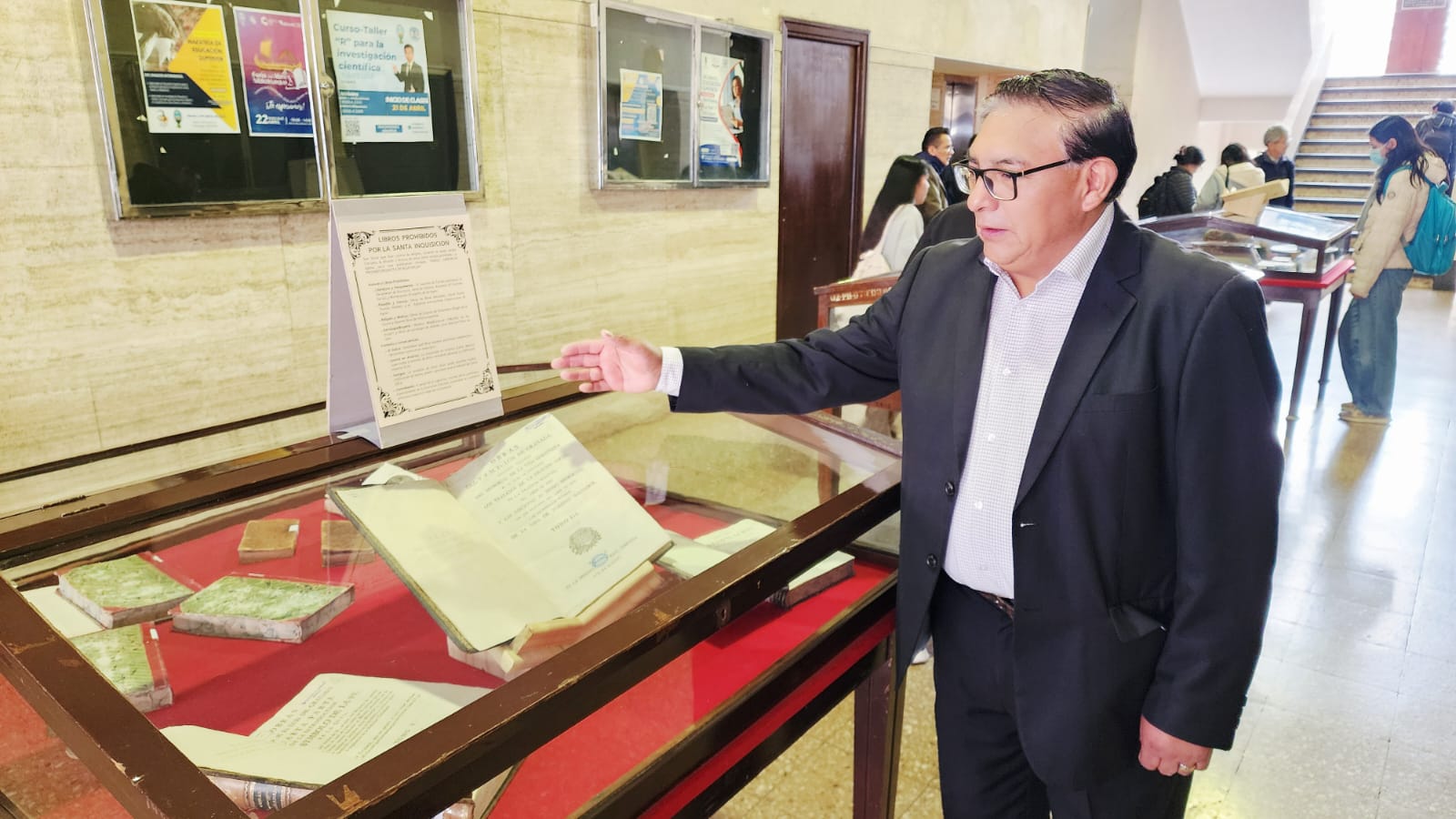 “A cada país le dan su bandera que llegó a la Luna, más un pedacito de la Luna. Es muy pequeñito, pero el que tenemos se lo ve grande porque está encapsulado en un acrílico que, por su geometría, aumenta mucho el tamaño”, explicó Rubbert Muñoz, técnico del Observatorio Astronómico y el Planetario Max Schreier de la UMSA.